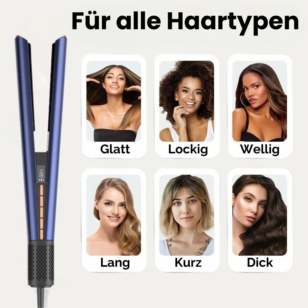 Der AirStrait kommt ohne Heizplatten und ohne Druck aus. Er ist so konzipiert, dass man nicht an den Haaren ziehen muss und die Haare gleiten perfekt durch.